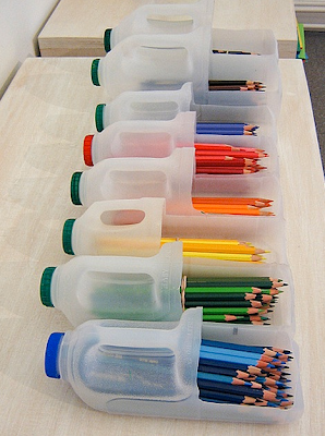 A great idea to use your plastic bottles for organization and inexpensive. Love it!